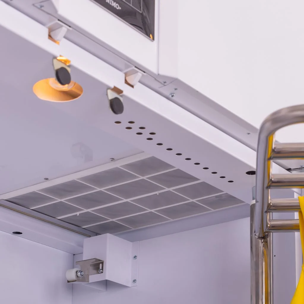 • Kuivatuskapi elektroonika ja soojuspump asub kapi ülaosas, mis hõlbustab hooldust